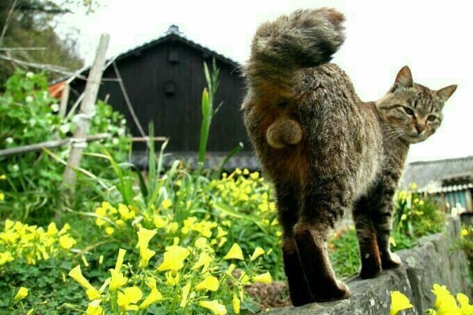 집고양이들은 보통 중성화를 하여 쉽게 볼 수 없지만 야생 고양이들에게서 쉽게 관찰되는 부위죠.