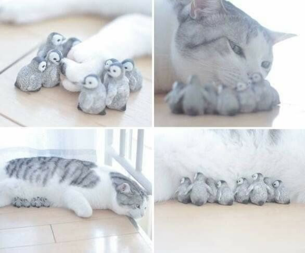 고양이 털로 이번엔 펭귄 인형들을 만들었습니다.