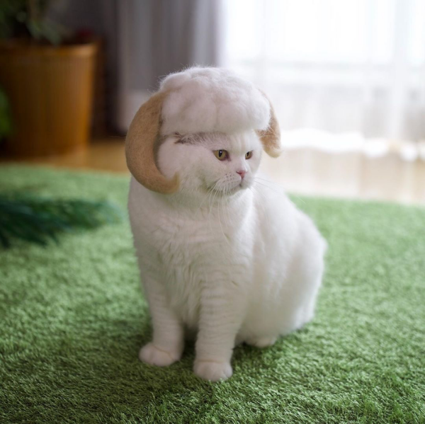 양 옆의 뿔은 치즈태비의 털을 빌려 와서 제작한 것 같습니다.