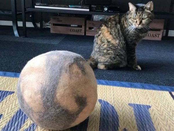 무려 8년간이나 고양이의 털들을 모아서 만든 커다란 공입니다.