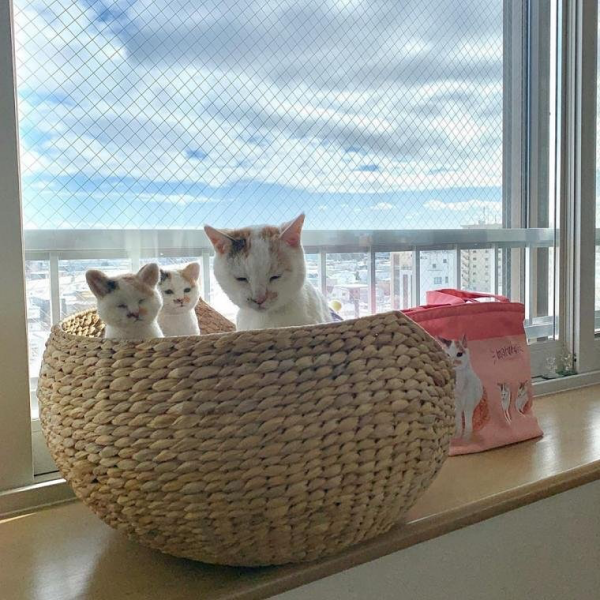 오밀조밀하게 고양이에게 모여있는 모습이 너무나도 귀엽습니다.