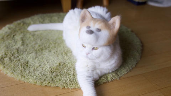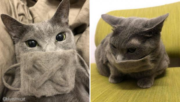고양이의 털을 엮어 만든 냥이 친화적인 마스크입니다.