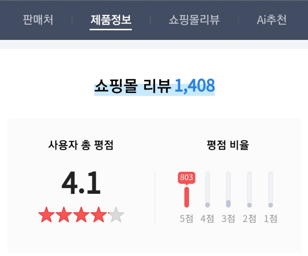 리뷰를 숫자를 보니 이미 수 많은 사람들이 구매하여 사용 중인 것을 알 수 있습니다.