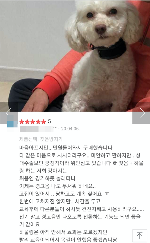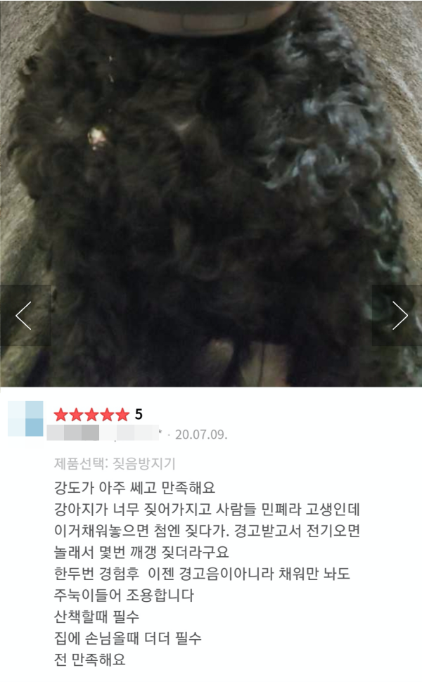 리뷰 글들을 읽다보니 민원을 해결하기 위해 어쩔 수 없이 짖음방지기를 선택했다고 하는 의견이 많았습니다.