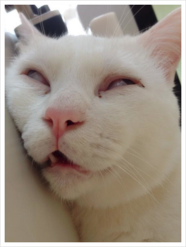 평소에는 정말 귀여운 모습을 하고 있는 하얀 고양이입니다.