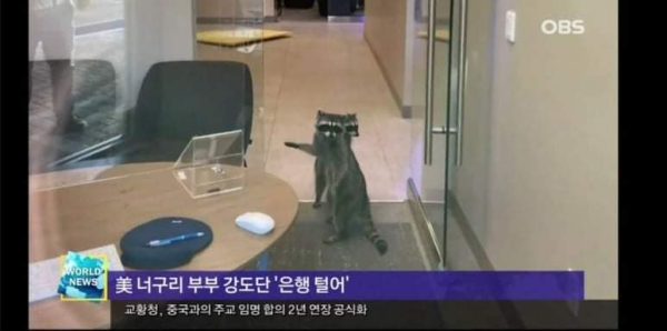미국에서 은행을 습격한 너구리 부부 강도단이 CCTV에 포착되었습니다.