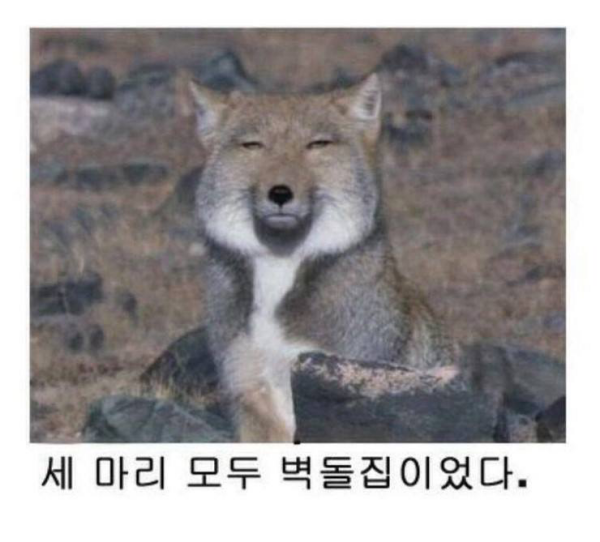 세 마리의 돼지가 전부 벽돌집을 지었다면 늑대의 표정이 이렇지 않을까요?