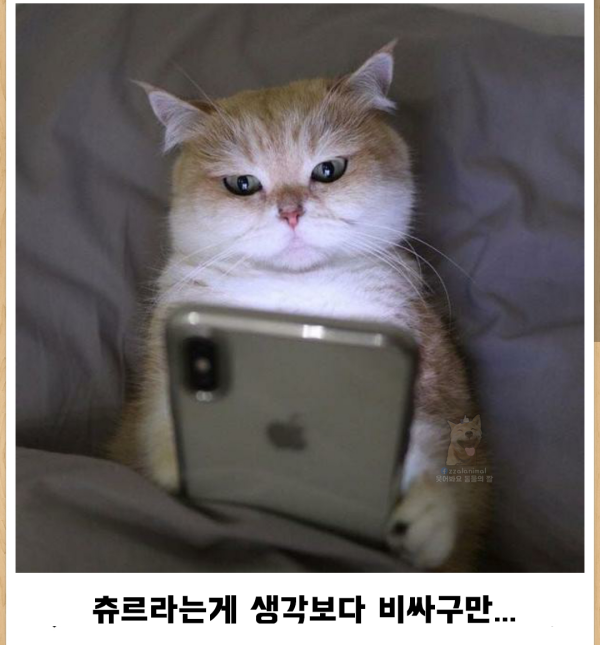 고양이가 실제로 온라인 쇼핑을 하다가 처음으로 츄르의 가격을 확인한다면 이런 모습이 아닐까요?