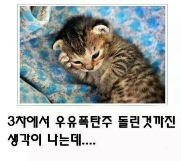 3차에 들이부었던 우유폭탄주가 생각보다 강했나봅니다.