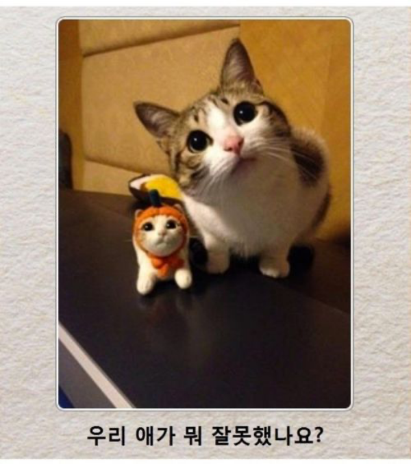 정말 자신의 아기 고양이가 잘못을 저질렀는지 묻고 있는듯한 모습이 너무 귀엽습니다.
