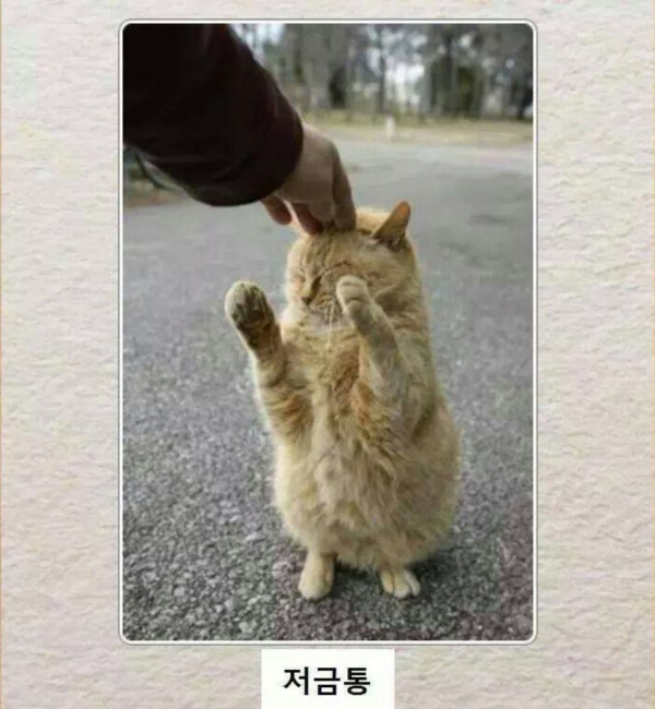 고양이를 쓰다듬어 주기위해 뻗은 손이 마치 동전을 넣는듯한 모습처럼 느껴져서 너무 귀엽네요.