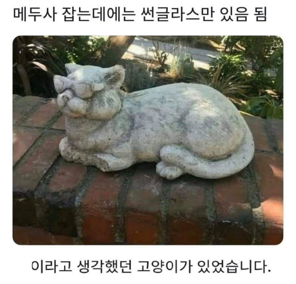 메두사의 석화는 현대 문물인 선글라스로도 못 막는다는 것을 고양이가 몸소 증명해 주었습니다.