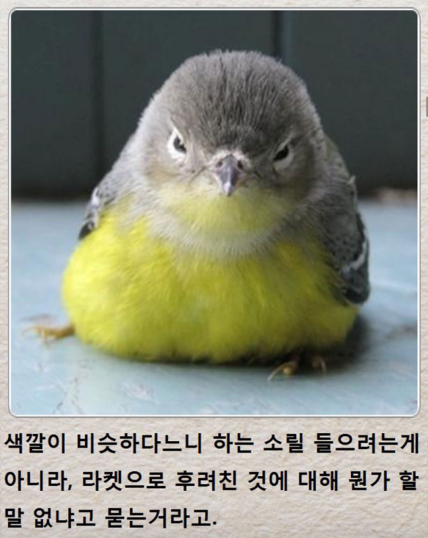 테니스 공과 너무나도 닮은 새의 사진입니다.