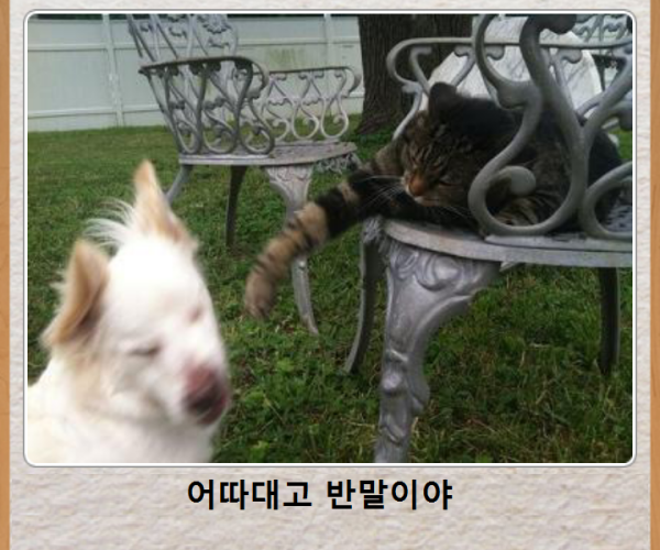 고양이에게 불꽃 싸다구를 맞은 강아지의 모습인데요. 그 파워가 얼마나 강한지 고개가 돌아가 버렸습니다.
