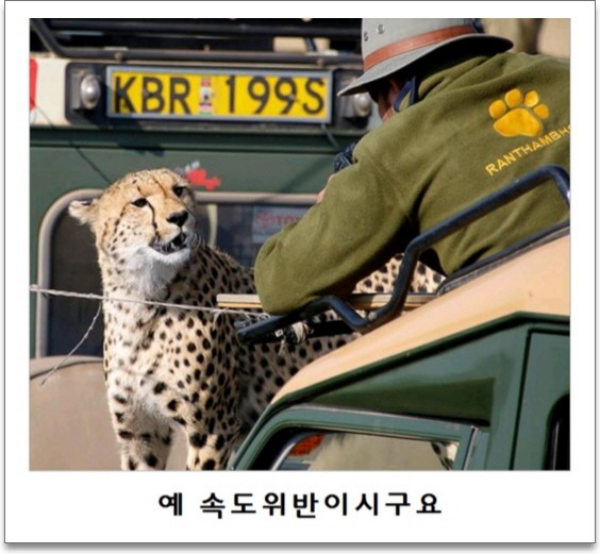 이 곳에서는 자동차뿐만 아니라 빨리 달리는 치타도 단속 대상이였군요.