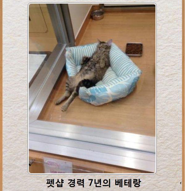 펫샵에서 벌써 7년째를 맞이하고 있는 베테랑 고양이라고 하는데요.