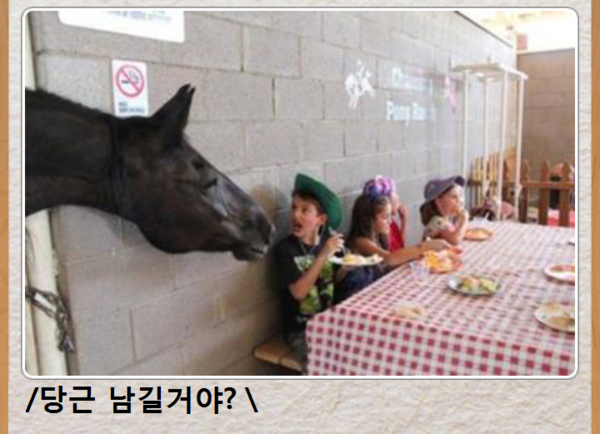 말은 그저 당근을 싫어하는 아이를 찾아다니면서 혹시나 남긴 당근이 있다면 자기가 먹으려고 하는 것 같네요.