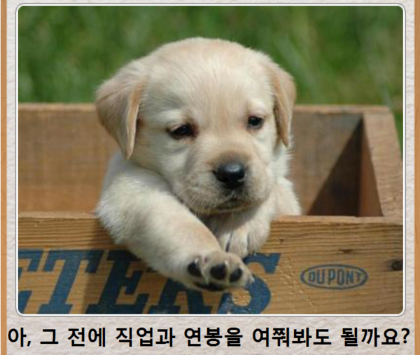 입양되기 전 자신을 잘 보살필 수 있는지 주인의 조건을 따져보는 정말 현명한 강아지입니다.