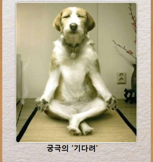 여기에 나오는 강아지는 간식의 유혹을 떨쳐내고 궁극의 기다려를 깨우친 뒤 득도의 경지까지 올라선 모습입니다.
