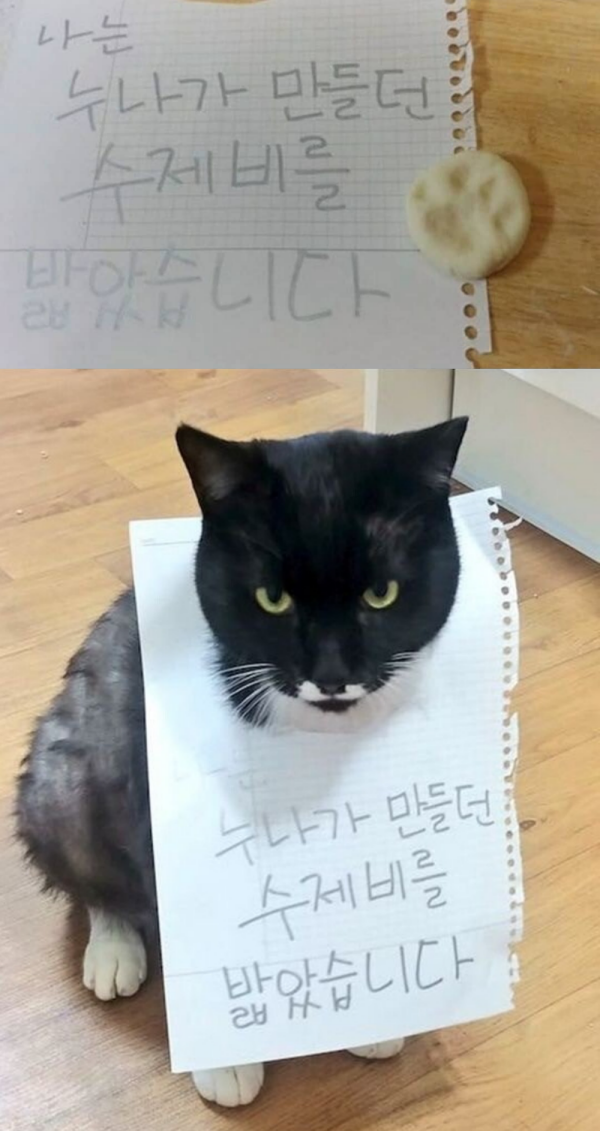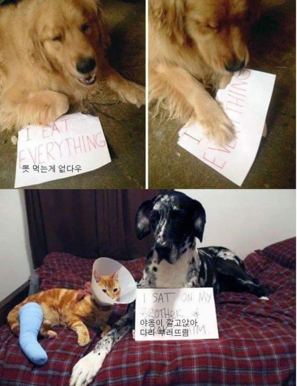 반려동물들이 저지른 잘못의 내용을 종이에 적어 공개하는 첼린지가 유행한 적이 있었는데요.
