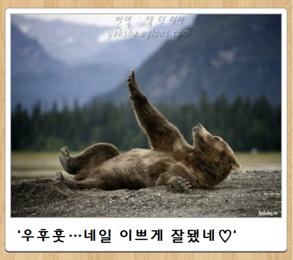 덩치와 어울리지 않는 소녀감성이 느껴지는 곰이네요.