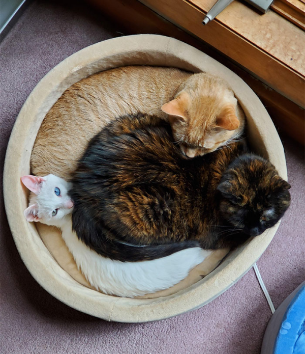 군대의 구 생활관 침상을 연상시키는 고양이들 수면 모습이네요.