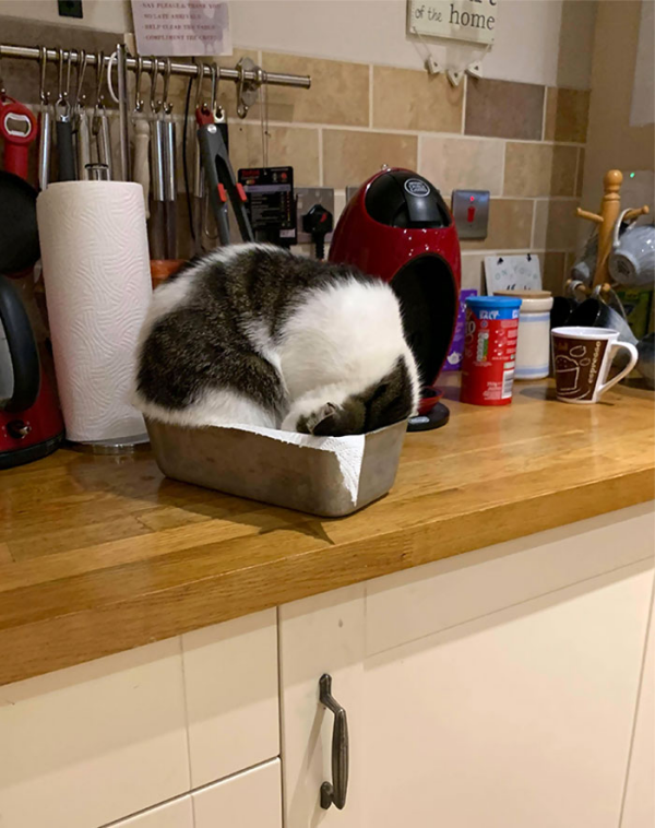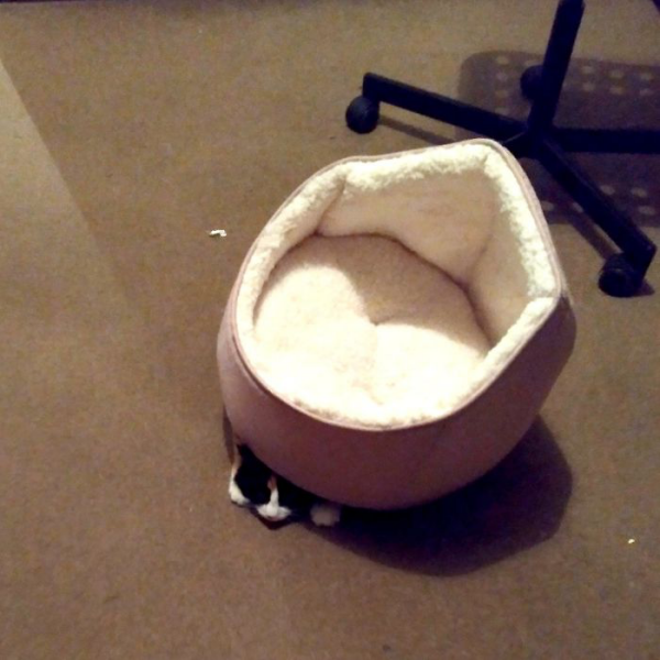 쏙 들어가 있는 모습이 마치 고양이의 몸에 딱 맞게 제작된 침대 같군요.
