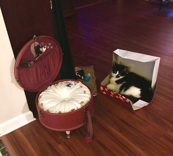 모든 고양이의 침대는 종이상자 앞에선 어림도 없는 모양입니다.