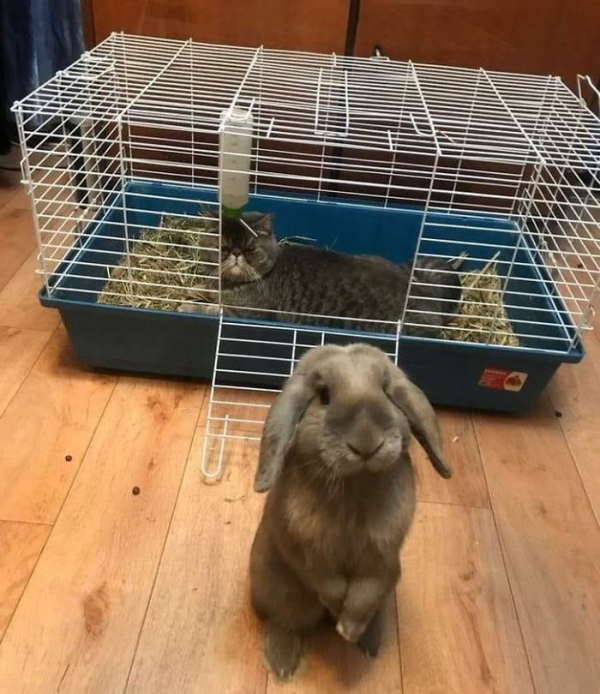 토끼가 집에 못들어가는 이유가 뭔가 봤더니 고양이가 들어가 있네요.