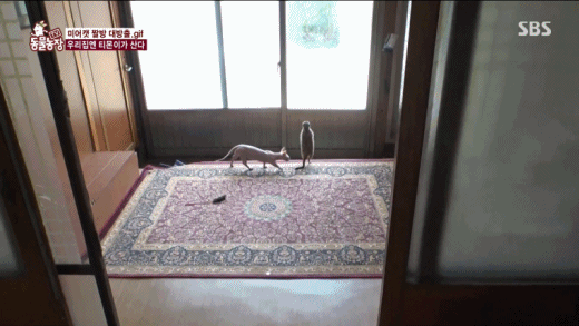 방송에서도 크게 화제가 되었던 미어캣가 같이 사는 고양이인데요.