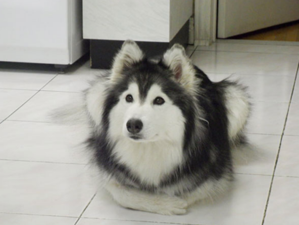 지금 보이는 이 식빵 굽는 허스키는 '탈리'라는 강아지인데요.