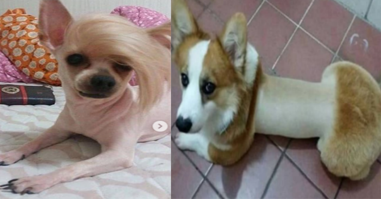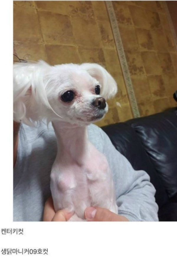지금부터 주인분들의 의욕은 충만했으나 미숙한 미용 실력으로 안타깝게 희생된 동물들을 보여드리겠습니다.