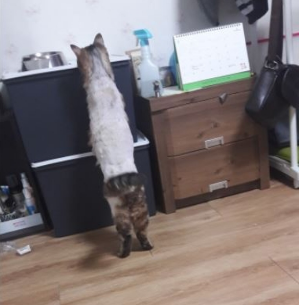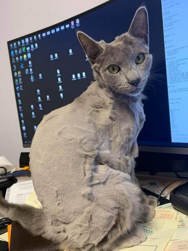 지금까지 강아지를 살펴보았으니, 이제 고양이 셀프미용 대참사들을 살펴보겠습니다.